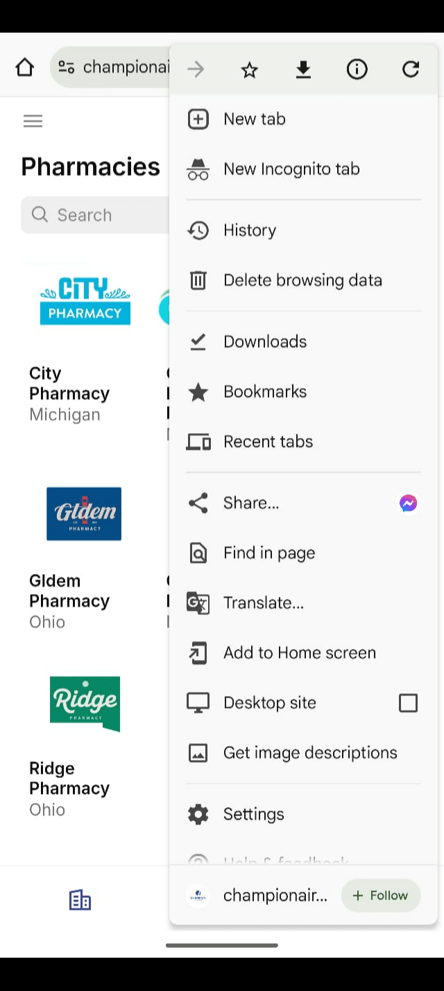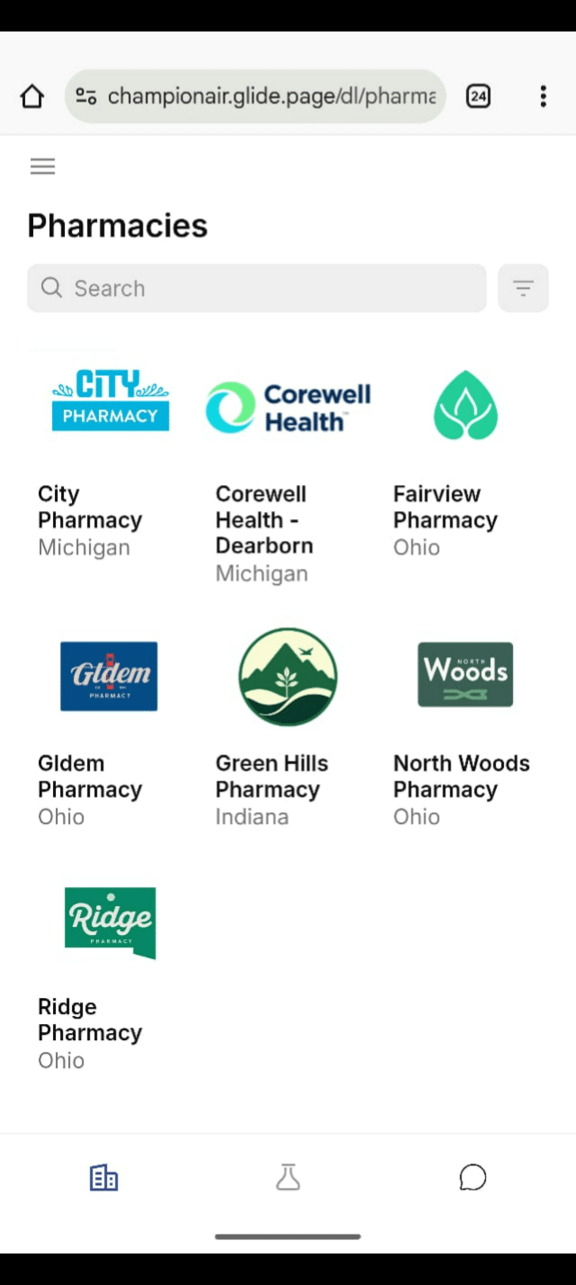 Navigate to https://championair.glide.page/dl/pharmacies